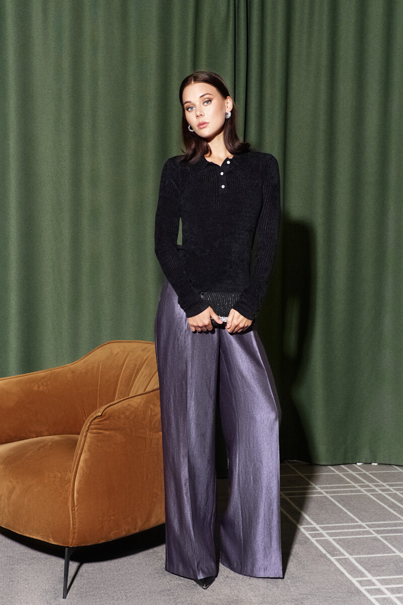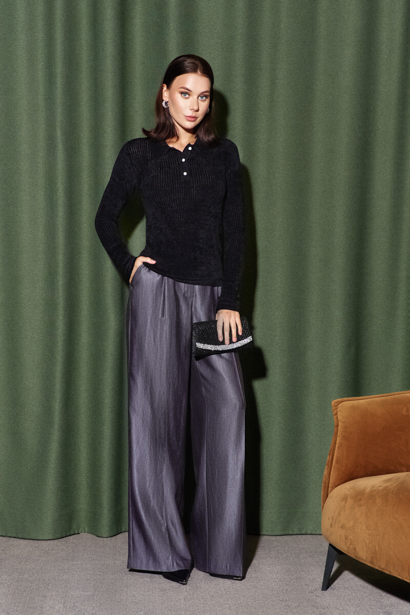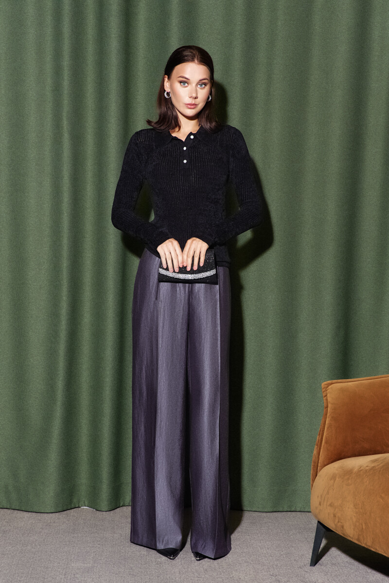 Классические свободные брюки в стиле city chic выполнены из костюмного полотна. Модель с комфортной высокой посадкой, на притачном поясе со шлевками и эластичной лентой внутри по спинке, застегивающимся на потайной брючный крючок. Спереди предусмотрены косые карманы и застёжка на тесьму «молнию». Длина изделия по боковому шву (с поясом) 113 см.