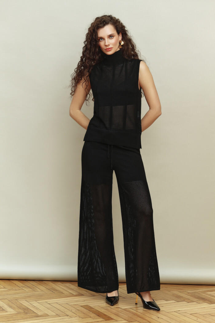 Привлекательные и стильные брюки из нежной трикотажной сетки с шортиками - идеальный выбор для женщин. Их прозрачные вставки раскрывают ножки, придавая образу изысканности и чувственности. Эти брюки выполнены из высококачественного материала, который обеспечивает комфорт и приятное ощущение на коже. Они удобно сидят на фигуре и имеют отличную посадку благодаря эластичному поясу, который обеспечивает идеальную посадку и комфорт при носке. Брюки прекрасно сочетаются с футболками, блузками и топами различных стилей, что позволяет создать множество модных и стильных образов для различных случаев - от повседневных встреч до особенных мероприятий. Длина изделия 105 см.
