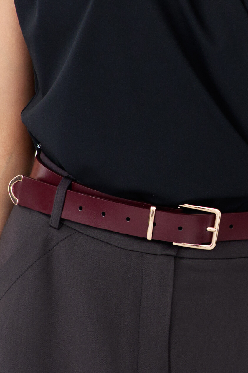 Ремень выполнен из натуральной гладкой кожи. Застегивается на металлическую пряжку —со золотым отблеском. Размерные характеристики M: ширина ремня — 2 см, длина ремня — 95 см, пряжка — 4x4 см, длина ремня от основания пряжки до центрального отверстия — 74 см. L: ширина ремня — 2 см, длина ремня — 105 см, пряжка — 4x см, длина ремня от основания пряжки до центрального отверстия — 84 см. XL: ширина ремня — 2 см, длина ремня — 115 см, пряжка — 4x4 см, длина ремня от основания пряжки до центрального отверстия — 94 см.